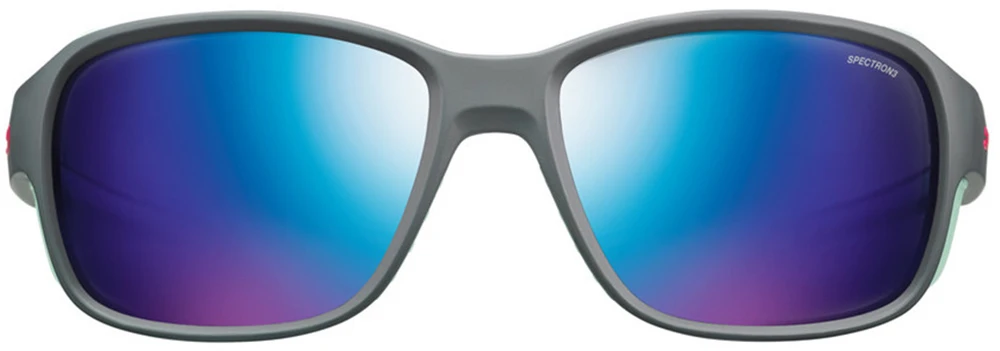 Julbo Monterosa 2 Spectron 3CF: dámské sluneční brýle vhodné na horskou turistiku, na ferraty. Mají odnímatelné bočnice, které chrání oči před sluncem i ze stran. Nosník s pružnou vložkou tlumí nárazy. Nožičky jsou hladké, nezachytávají vlasy.