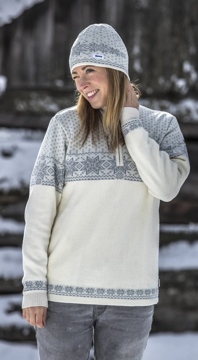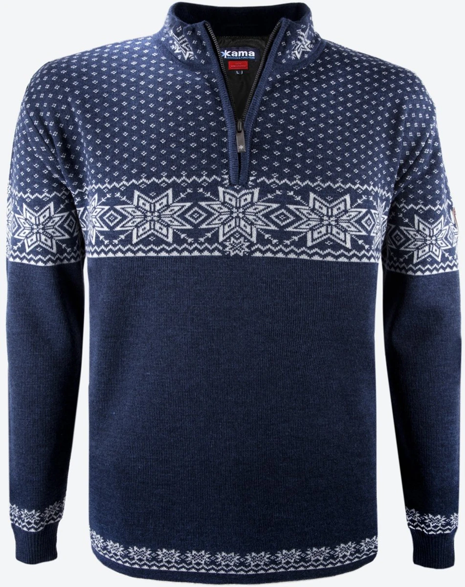 Kama 3053 Windstopper: pletený svetr s rozepínáním u krku, nízkým stojáčkem a s norským vzorem. Je vyroben ze 100% Merino vlny, která je příjemná na těle. Díky úpravě Nanotech je svetr odolný vůči vodě, prachu a drobným nečistotám. Má podšívku z Windstopperu proti profouknutí.