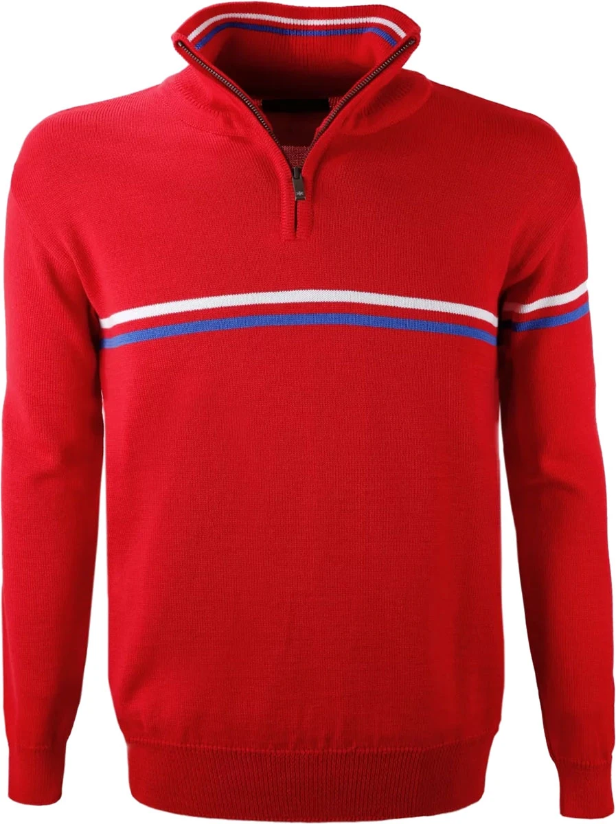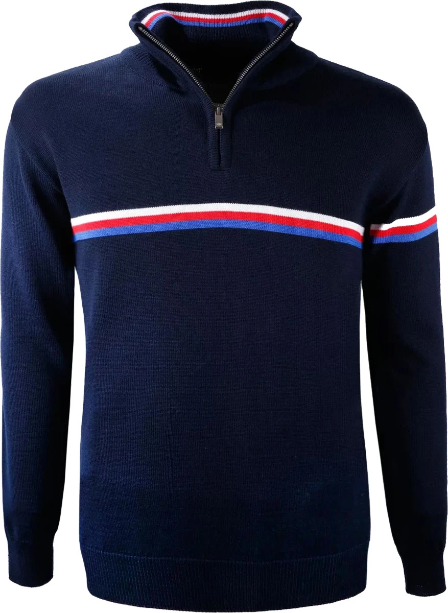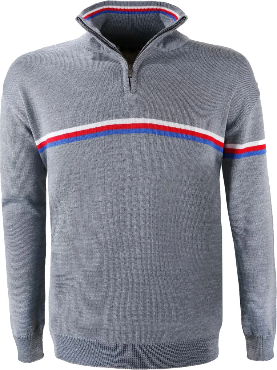 Kama 4056 - jednobarevný svetr se zipem u krku ozdobený trikolorou. Je vhodný pro podzimní a zimní využití. Hodí se pro sportovní využití i pro volný čas. Výborně vás ochrání před prochladnutím a zároveň je prodyšný.