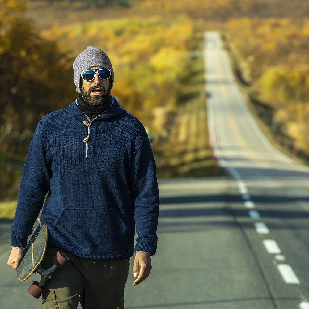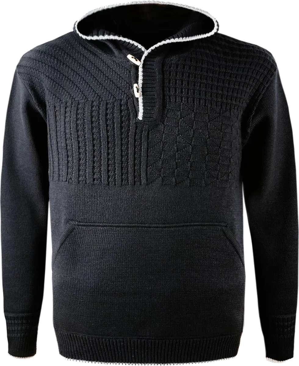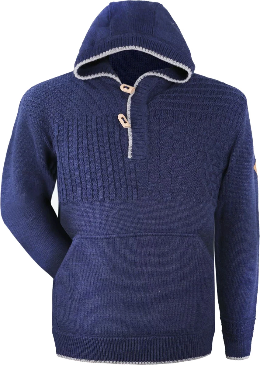 Kama 4059: originální pletený svetr s klokaní kapsou a kapucí, je vyrobený ze směsi Merino vlny a akrylu. Svetr z tohoto materiálu je velmi odolný a snadný na údržbu. Svetr je zajímavý kombinací několika různých úpletů. Je pružný, hodí se na různé aktivity, je příjemný na nošení, vhodný i pro alergiky, neabsorbuje pachy.