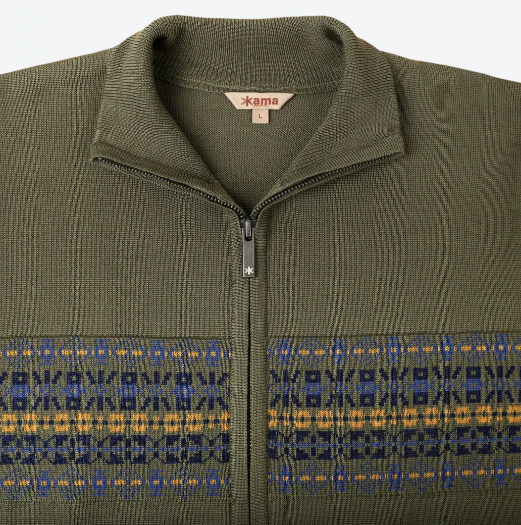 Kama 4115: pánský svetr z čistého Merina zajistí optimální termoregulaci a přirozené pohodlí. Jednobarevný tenký úplet ze 100% Merino vlny doplňuje pruh vzoru přes horní část těla svetru. Svetr je vybavený praktickým zapínáním na zip. Svetr se hodí jako druhá vrstva.