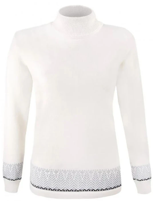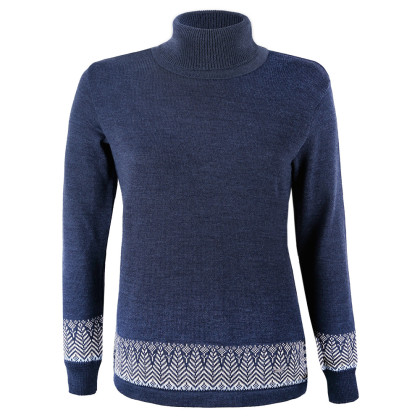 Kama 5022 – jemný dámský svetr s rolákem a vzorem na spodním okraji. Je vyrobený ze 100% vlny Merino, je příjemný na nošení, nekouše a drží tvar. Má rolák ke krku. Rukávy jsou zakončeny drobným patentem. Na spodním okraji tohoto dámského vlněného svetru je jemný vzor.