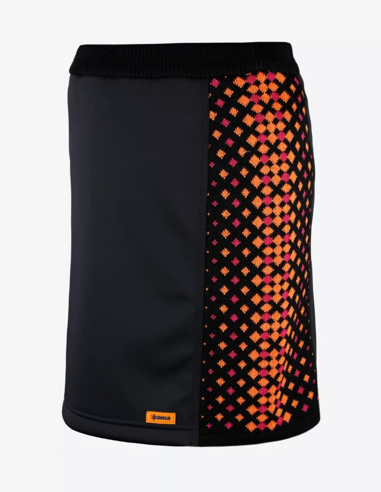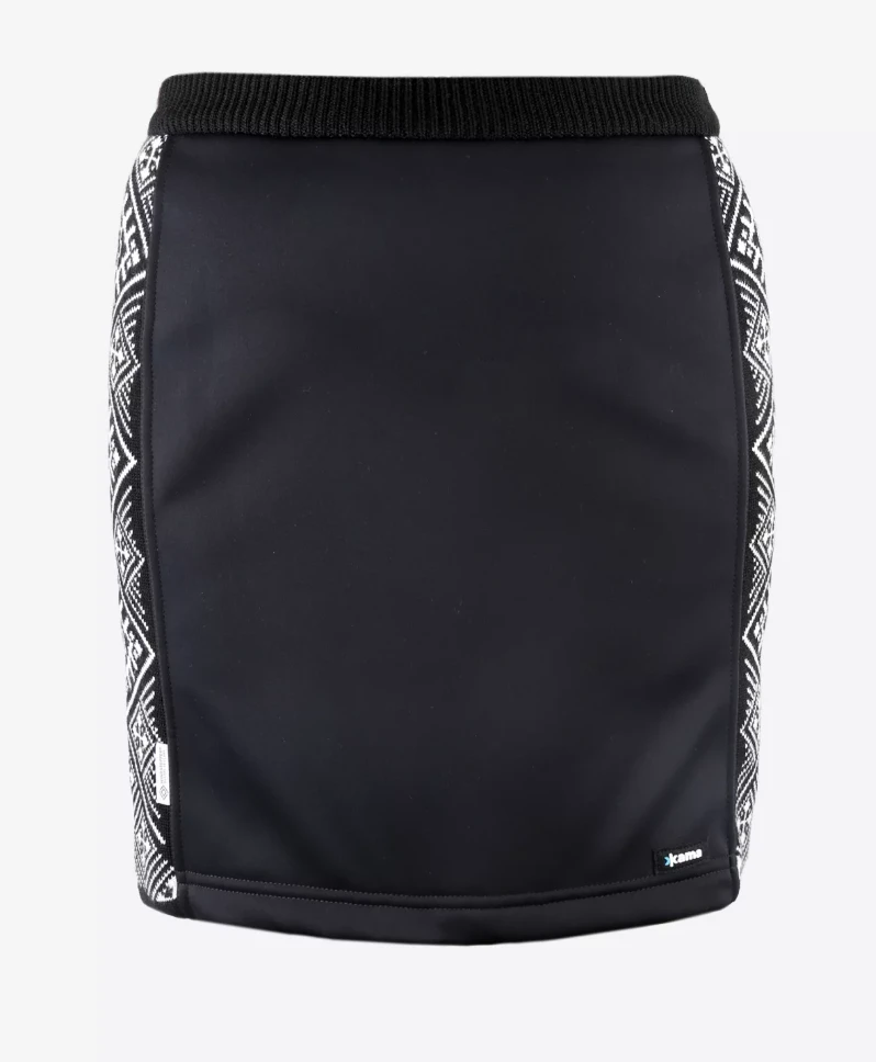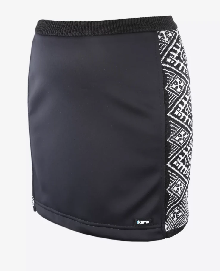 Kama 6010: softshellová sukně s pletenými pruhy na bocích. Sukně chrání střední partie těla na běžkách i na procházce. Sportovkyně tělem i duší si tuto sukni zamilují i ve městě. Praktický úplet na bočních stranách umožňuje snadnou manipulaci, optimální délka nebrání pohybu. Membrána GORE WINDSTOPPER® brání podchlazení větrem a přispívá k tepelné pohodě.