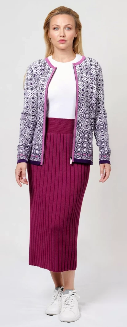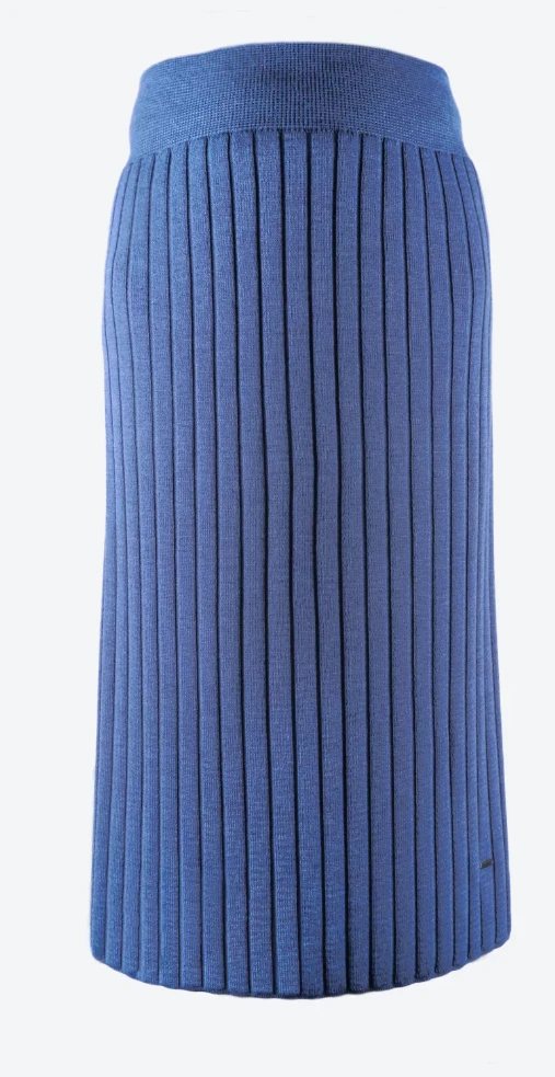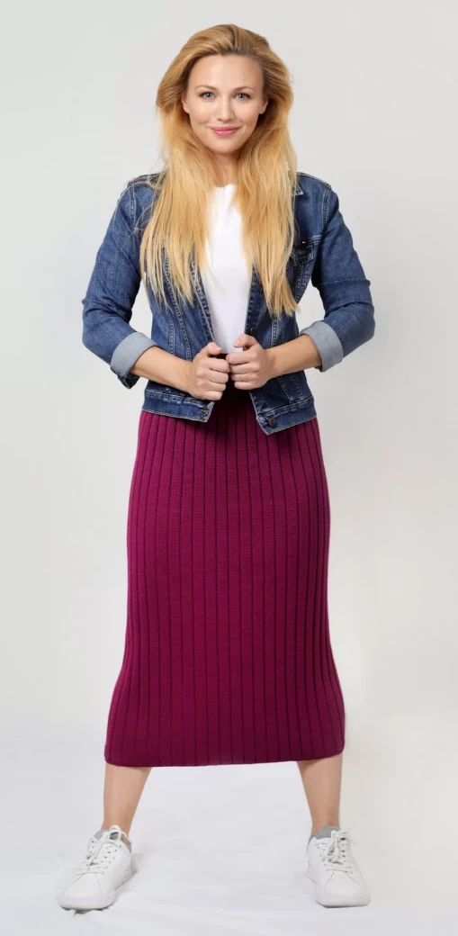 Kama 6014: jednobarevná delší pletená sukně. Sukni lze kombinovat s různými svetry. Sukně je pohodlná, elegantní a praktická na každodenní nošení. Vzadu má rozparek.