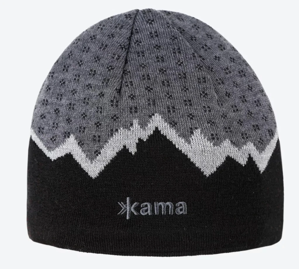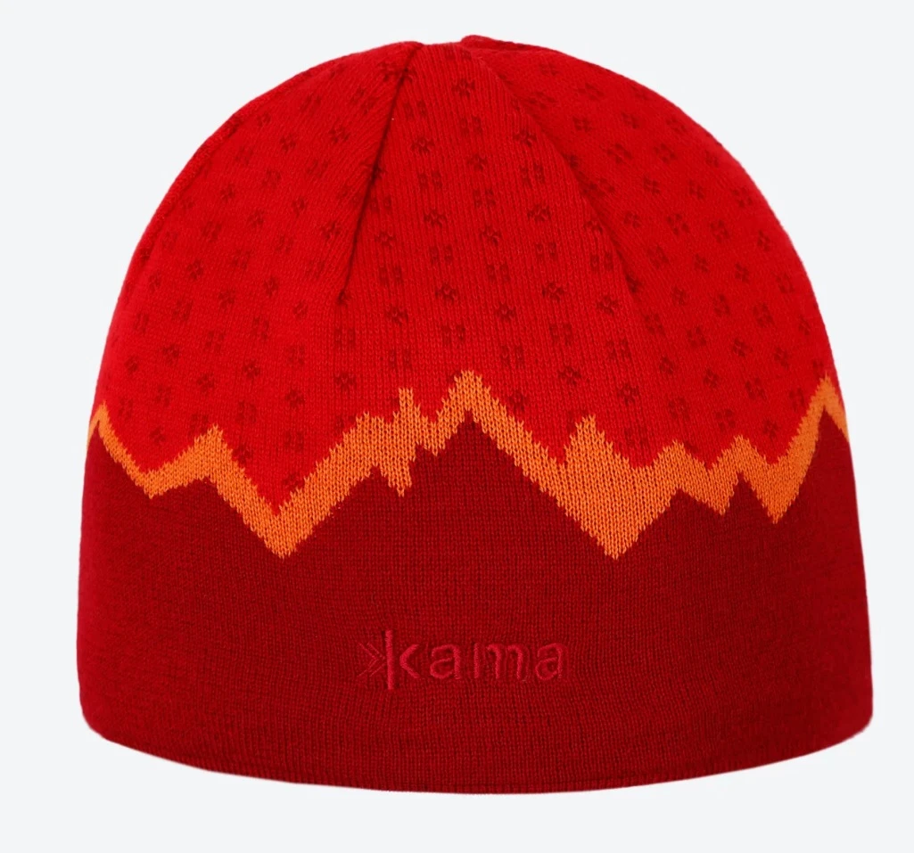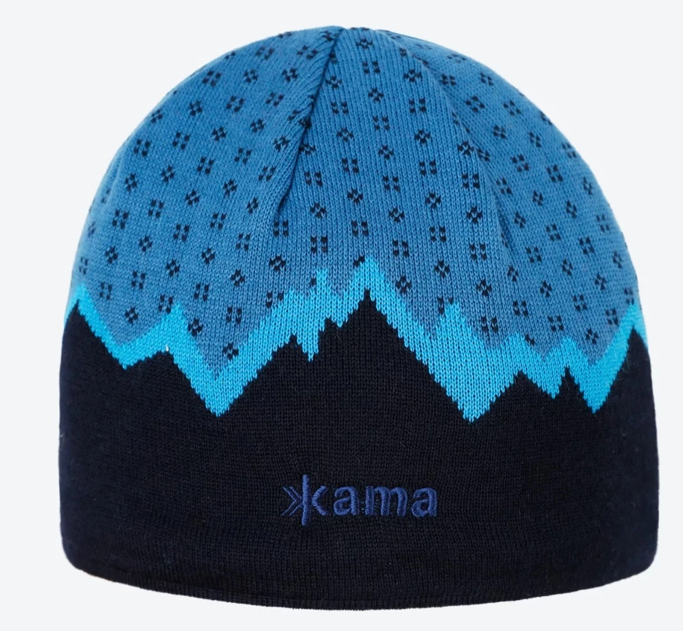 Kama A169: Příjemná zimní čepice s motivem hor, která vás ochrání před chladným zimním počasím. Je vyrobená z kombinace prémiových vláken v poměru 50% merino vlna, a 50% akryl. Díky jednoduchému střihu se hodí jak pro pány, tak pro dámy. Můžete ji s sebou vzít do přírody, do města, ale také ji požít jako čepici pod lyžařskou, nebo lezeckou helmu. Uvnitř čepice najdete podšívku z příjemného hydrofobního materiálu Thermolite.