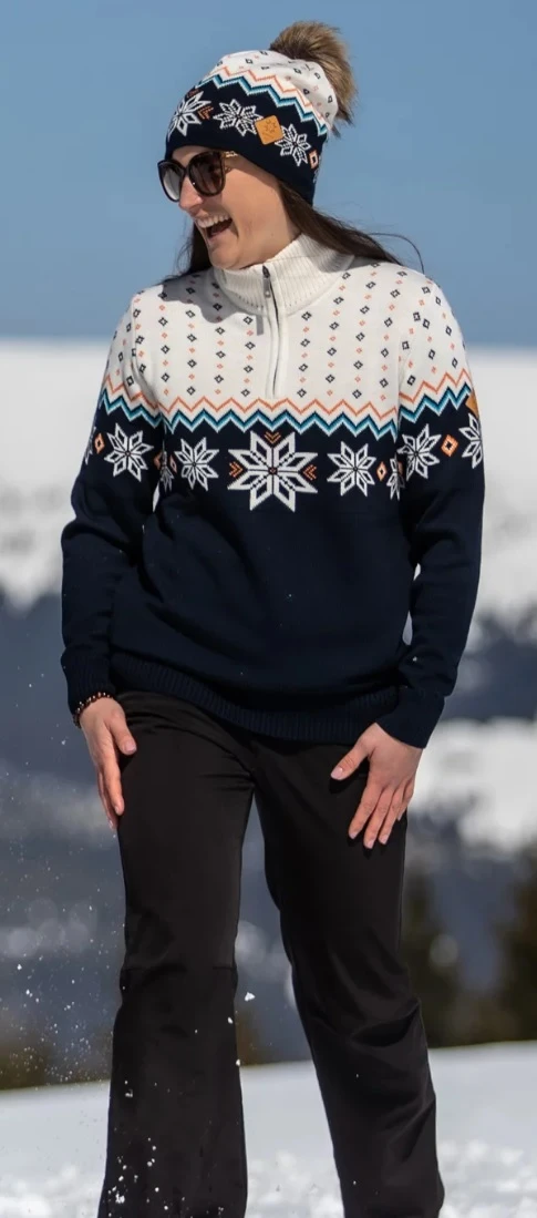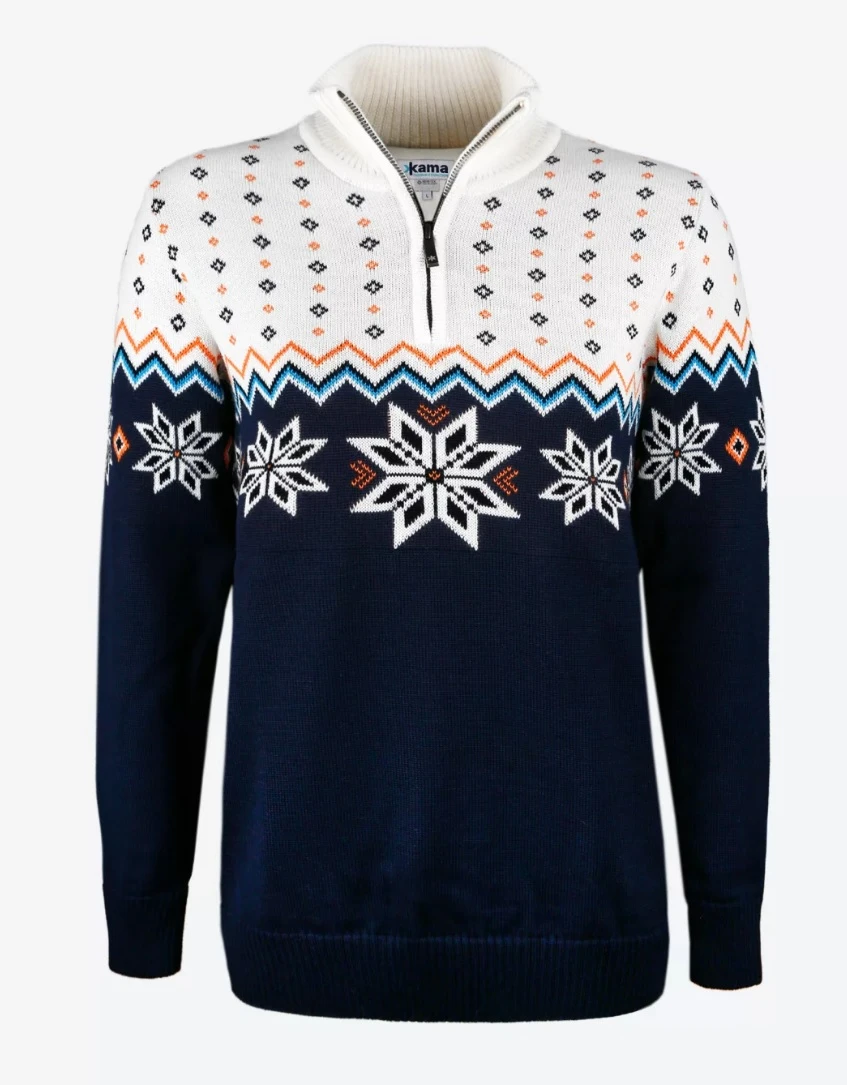 Kama AND 501: Stylový dámský svetr z kolekce Kama Andora. Tento teplý a pohodlný svetr byl navržený pro reprezentační tým knížectví Andorry na čtvrtou zimní olympiádu. Hodí se do chladného zimního počasí, na hory, nebo na běžné nošení. Svetr je vyrobený z jemného úpletu z kombinace prémiových funkčních vláken 50% Merino vlna a 50% akryl.