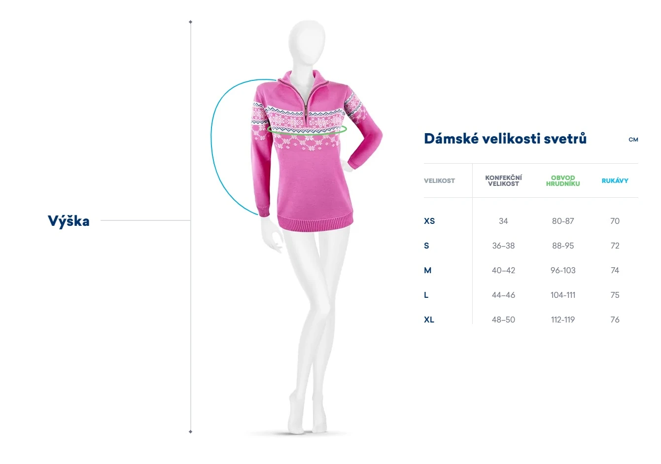 - velikost XS -XL