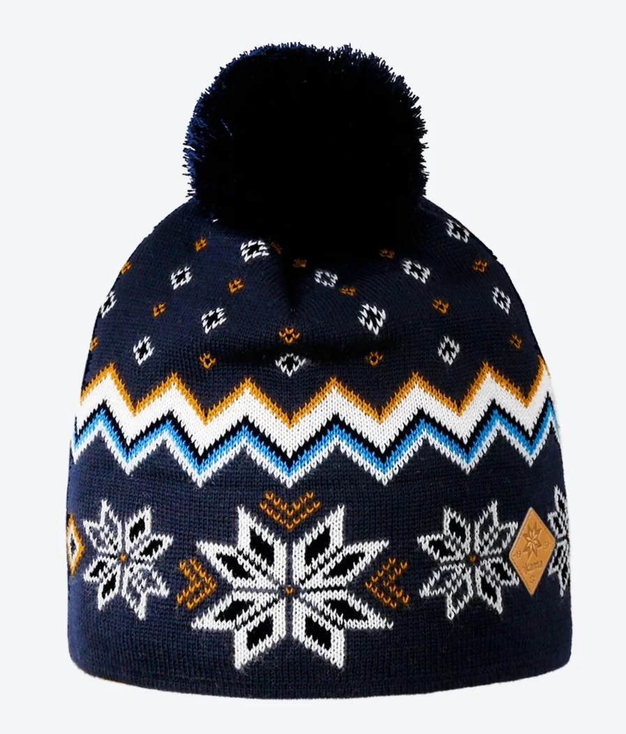 Kama AND A01: Vzorovaná zimní čepice s bambulí. Čepice je vyrobena z kombinace prémiových vláken Schoeller 50% Merino vlna a 50% akryl. Uvnitř je podšitá jemným fleecem, díky kterému je velmi pohodlná, a hřejivá. Vzor čepice je sladěn do kolekce Kama Andora navrženou pro reprezentační tým knížectví Andorry na čtvrtou zimní olympiádu. velikost čepice je univerzální.