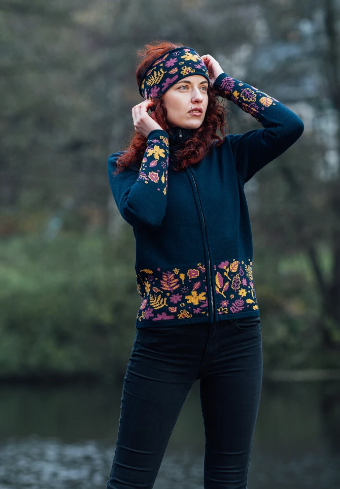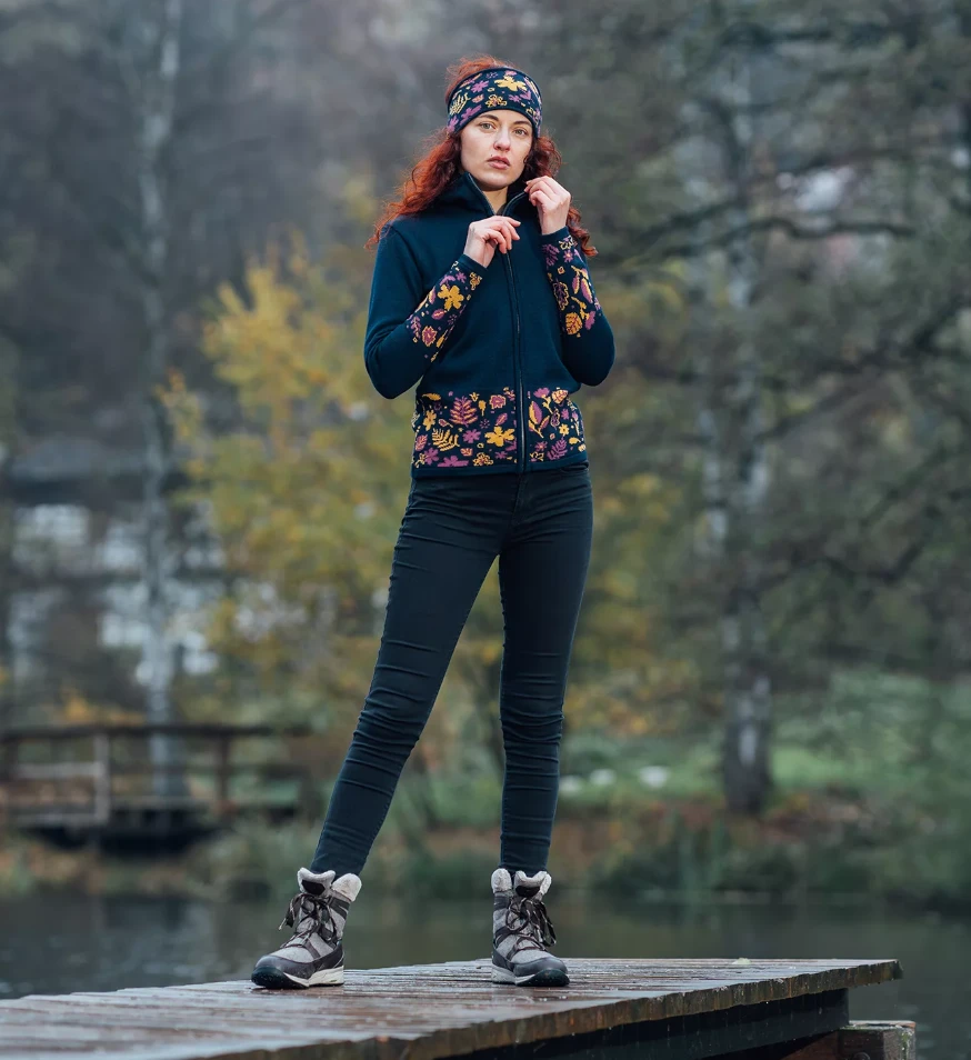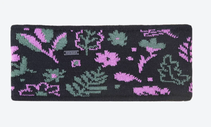 Kama C51: pletená dámská čelenka s květinovým vzorem. Uvnitř je podšitá kvalitním italským fleecem.
