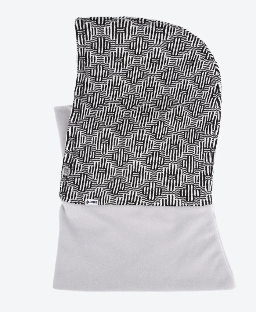 Kama D26: Multifunkční kukla vyrobená z kombinace pružného fleeceu a pleteniny. Lze ji použít jako kapuci, nákrčník, nebo přetáhnout přes helmu. Použitý náplet je z materiálu Schoeller 50% Merino vlna 50% akryl. Kukla je vyrobena ze speciálního ekologického materiálu perPETual Fleece.
