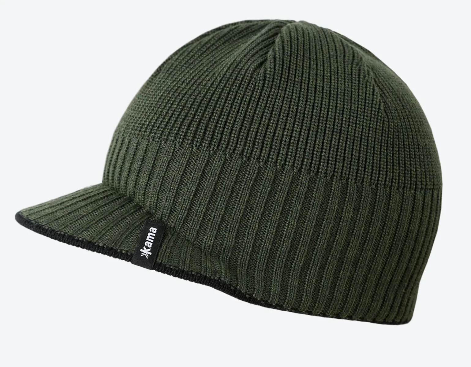 KAMA LA03 vyrobená z Merino vlny. Výborně sedí a poskytuje tepelný komfort díky žebrovanému úpletu. Před ostrým zimním sluncem nebo větrem chrání oči Kšilt.
