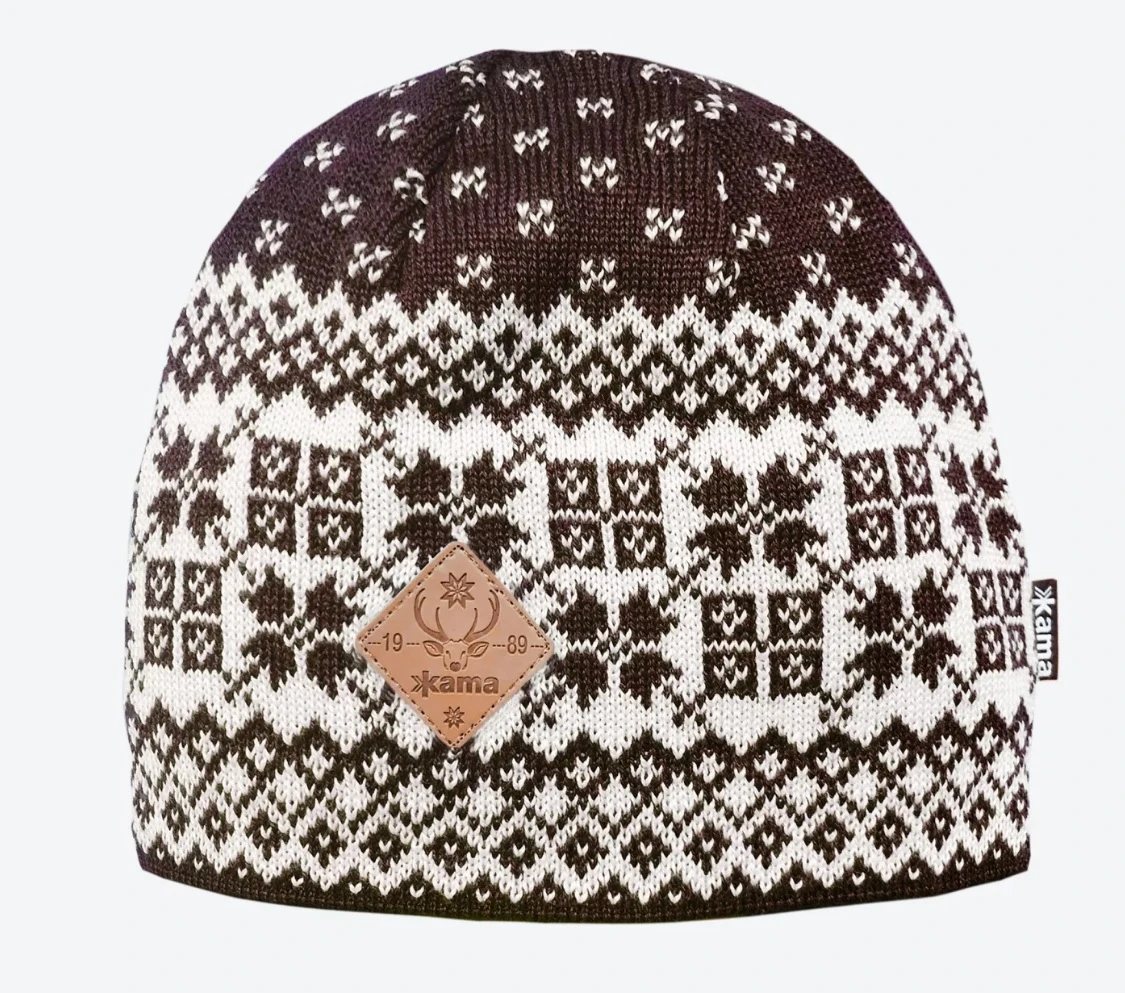 Kama LA40: Hřejivá zimní čepice, s norským vzorem. Je vyrobena ze směsi tkanin Schoeller 50% Merino vlna, 50% akryl. Uvnitř najdete integrovanou čelenku z jemného materiálu Polycolon, který je ideální pro odvod vlhkosti a maximální komfort. Čepice vám poskytne dostatečné teplo, ať už si ji s sebou vezmete v zimě k rybníku, nebo třeba do lesa.
