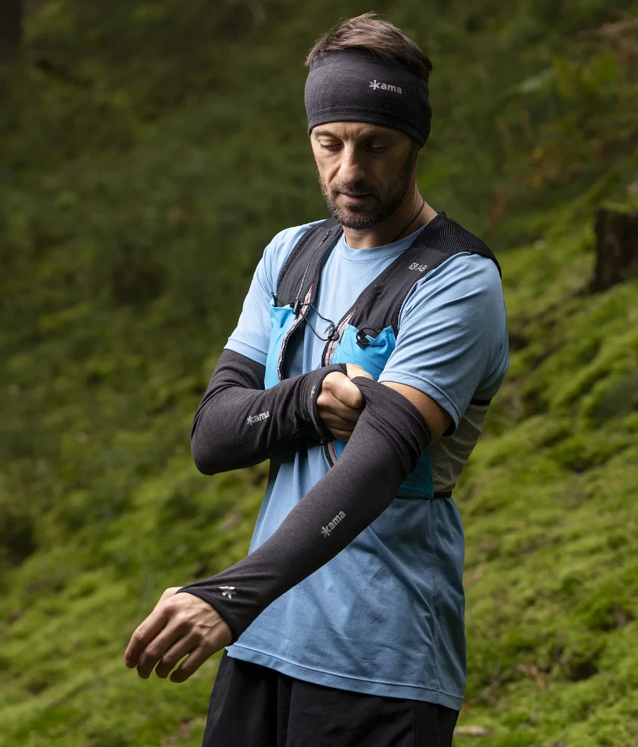 Kama N01: sportovní Merino návleky na ruce. Ideální doplněk k dresu nebo triku s krátkým rukávem, když se ochladí.