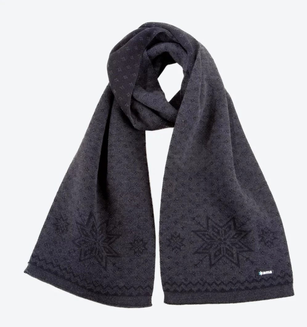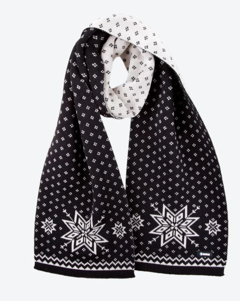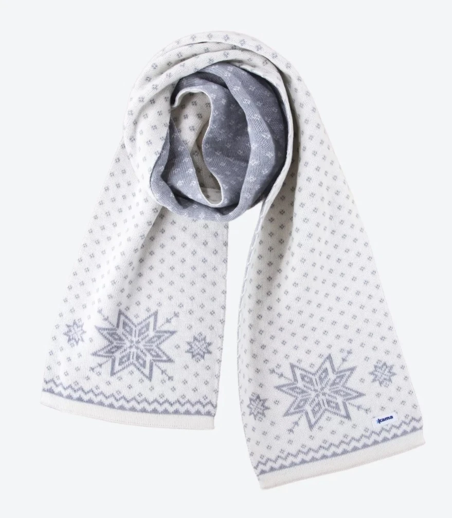 Kama S23: Kvalitní vlněná šála, vyrobená ze 100% merino vlny. Díky jednoduchému střihu a decentnímu zimnímu vzoru, šála nevyjde z módy během následujících pár let. Vytvoří tak ve vašem šatníku základ zimních doplňků.