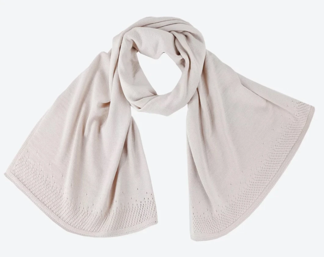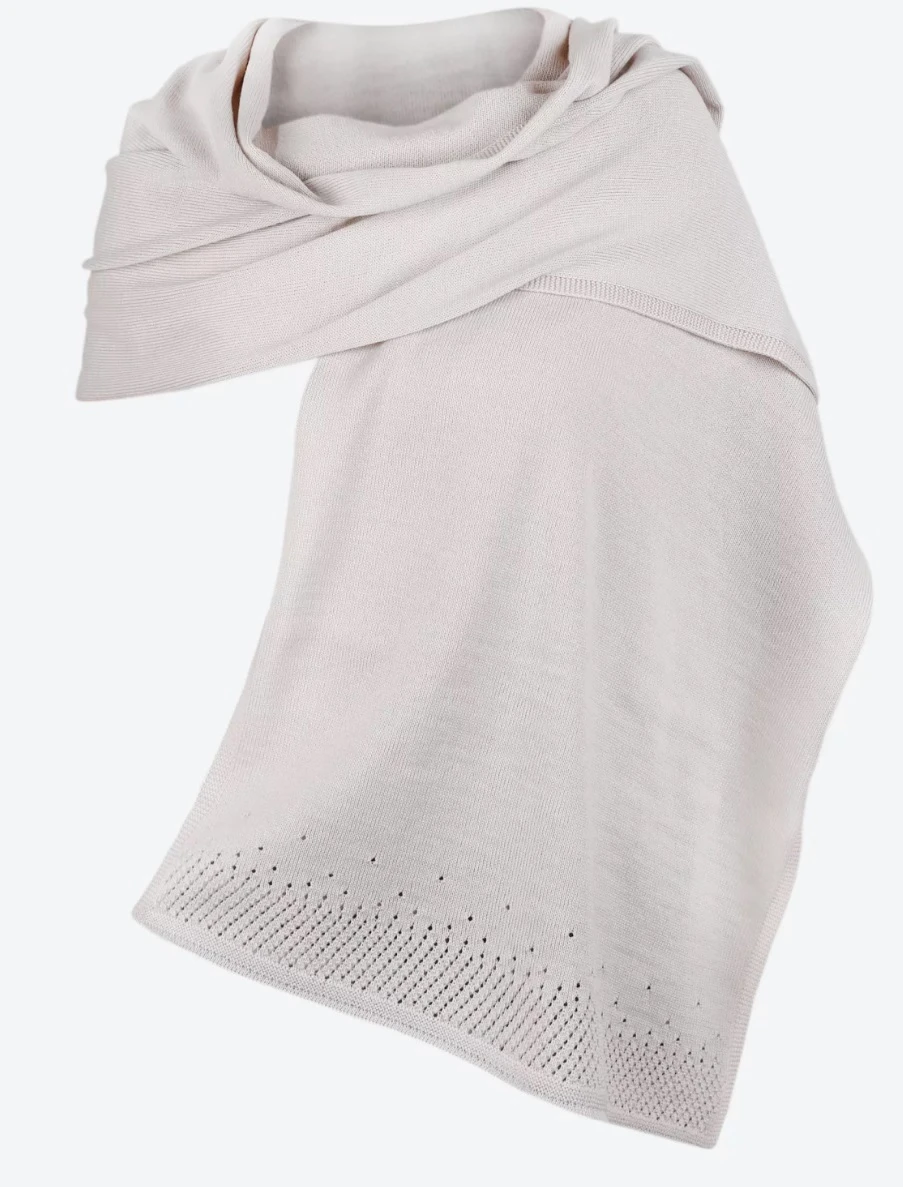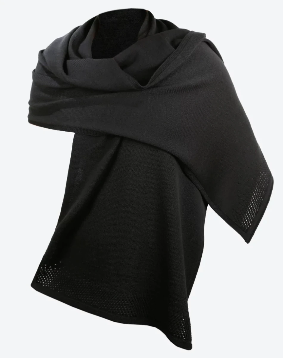 Kama S32: Stylová široká šála, s originálním plastickým vzorem na obou koncích. Je vyrobená ze 50% Merino vlny a 50% akrylu. Díky tomu je hřejivá a velice příjemná na dotek. Šálu je možné nosit jako přehoz přes šaty (pléd), nebo jako šálu ke kabátu.