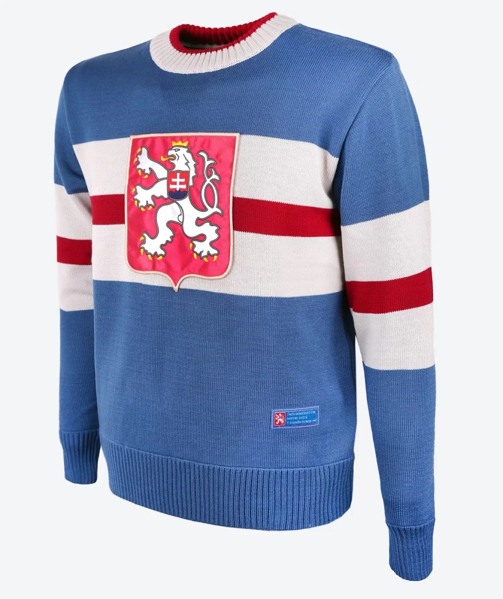 Kama Svetr ČSR - MS 1947: Retro dres československého hokejového týmu z MS 1947 je vyrobený ze 50% Merino vlna 50% akryl. Tento svetr je vzpomínkou na první zlatý úspěch československého hokeje v mezinárodním měřítku.