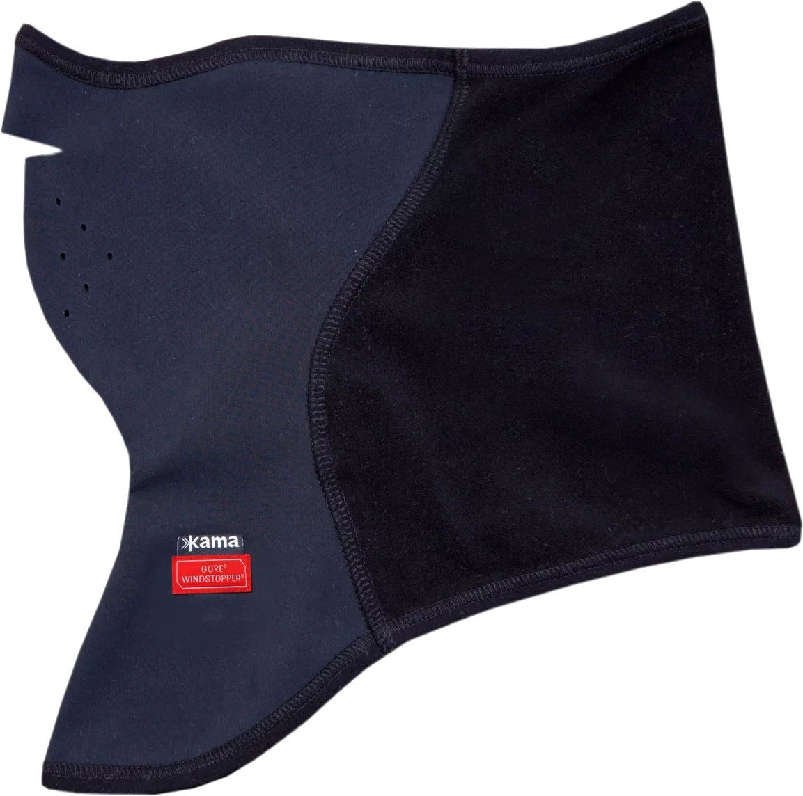 Kama SW02: anatomicky tvarovaný nákrčník vhodný do mrazivého počasí. Přední část je z materiálu GORE-TEX INFINIUM WINDSTOPPER Soft Shel, ten je větruodolný a zároveň prodyšný. V oblasti nosu a úst jsou otvory pro lepší dýchání. Zadní část je z jemného elastického fleecu.