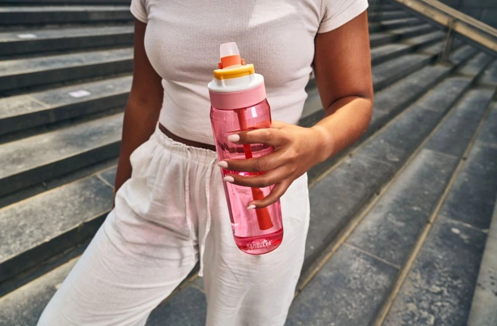 Kambukka Lagoon 1000 ml: láhev na vodu s integrovaným brčkem a dokonale těsnícím víčkem které kryje pítko.