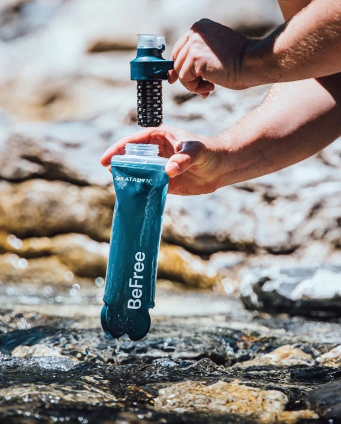 Katadyn BeFree AC: je outdoorový filtr na výrobu pitné vody z neověřených zdrojů, např. potoka nebo řeky. Obsahuje aktivní uhlí pro zlepšení chuti a vůně vody. Láhve jsou opatřeny 0,1mikronovou filtrační kartuší z dutých vláken pro mikrobiologickou bezpečnost