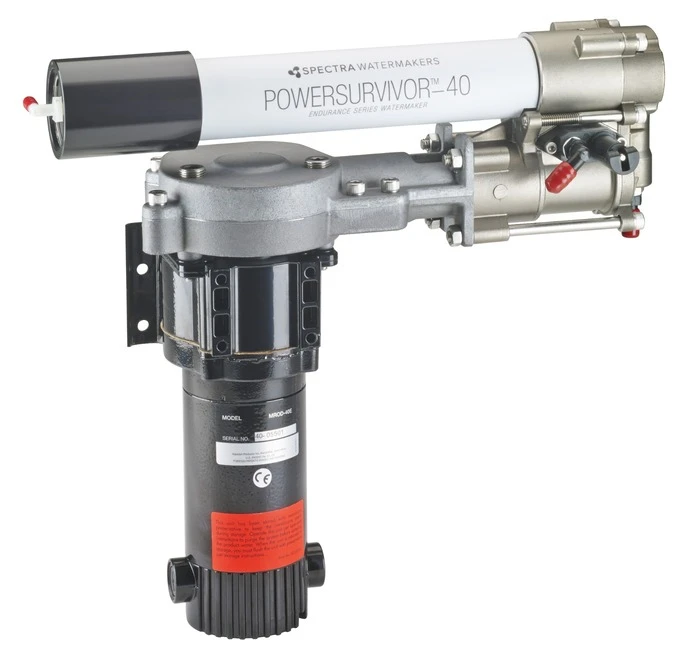 Katadyn PowerSurvivor 40E 12V - je nejmenší elektrické odsolovací zařízení na světě. Spotřebuje 8,5 W/l. Pracuje na elektřinu, ale pokud vám dojde zdroj dokáže pracovat i manuálně. Hodí se jako desalinační zařízení pro skupiny cca do 4 osob.