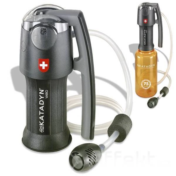 Outdoorový filtr na vodu Katadyn Vario - je vhodný pro filtraci vody ze znečištěných zdrojů jako jsou potůčky, rybníky, jezera. Dokáže zajistit 2 litry za minutu. Na jednu filtrační vložku vyčistíte až 2000 litrů pitné vody. Tento filtr získal ocenění ISPO Outdoor Award.