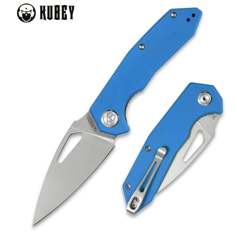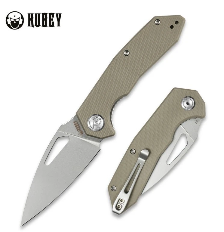 Kubey Thumbhole: EDC nůž se Spear čepelí, připomínající tvarem kopí. Hodí se pro každodenní nošení, čepel je z velmi oblíbené oceli D2, která vyniká vysokou odolností proti opotřebení, dobrou tvrdostí a houževnatostí. Rukojeť je z materiálu G10, neklouže a vyniká svou přilnavostí.