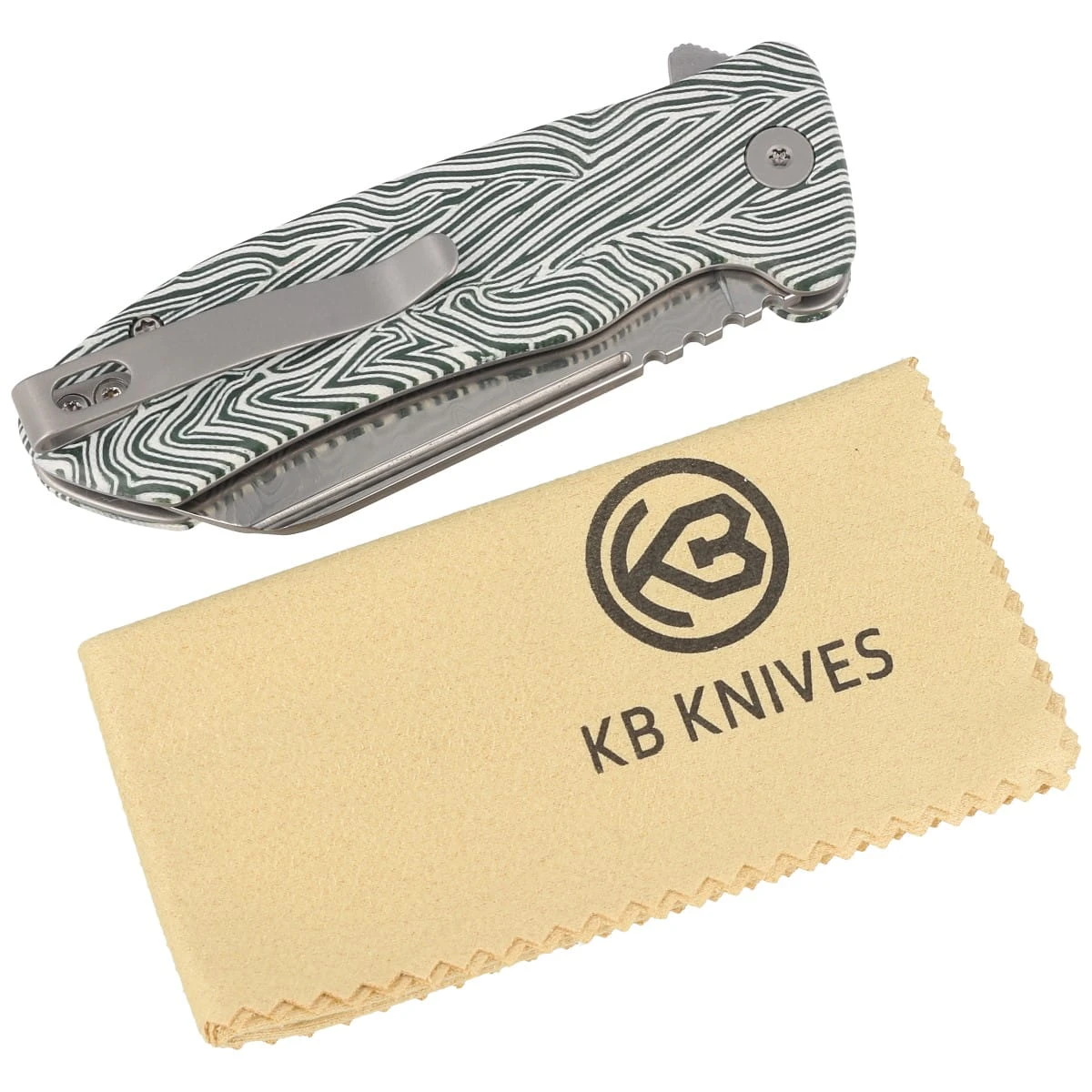 Kubey Creon S: kapesní zavírací nůž, který zaujme čepelí z ušlechtilé damaškové oceli. Rukojeť se vzorem je z odolného materiálu G10, který neklouže a vyniká svou přilnavostí.