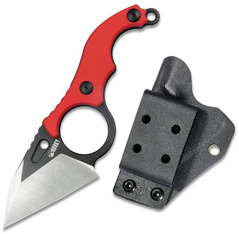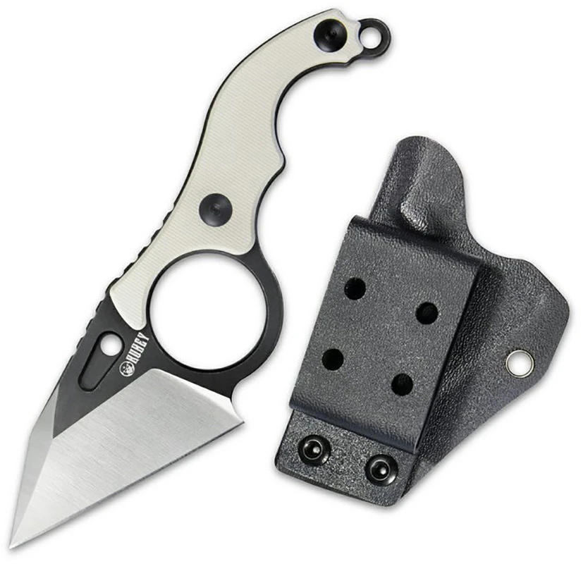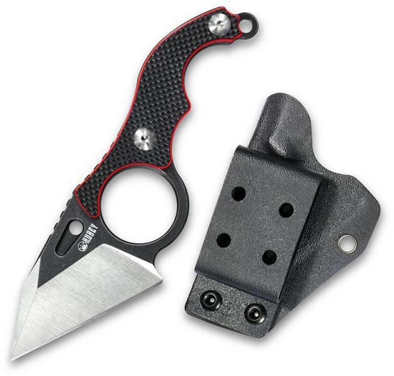 Kubey Hippocam: nůž s pevnou čepelí s okem na prst a krátkou ergonomicky tvarovanou rukojetí, která perfektně padne do ruky. Rukojeť je vyrobena z materiálu G10 (uhlíkové vlákno), který vyniká svou pevností, nízkou absorpci vlhkosti a vynikající odolností.