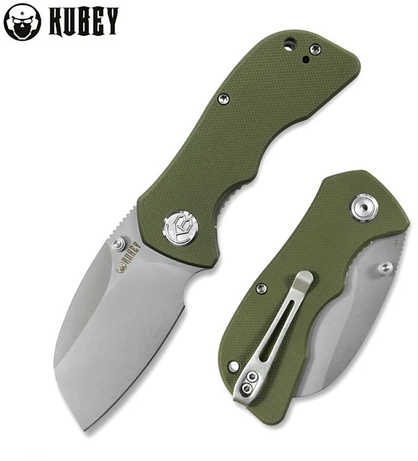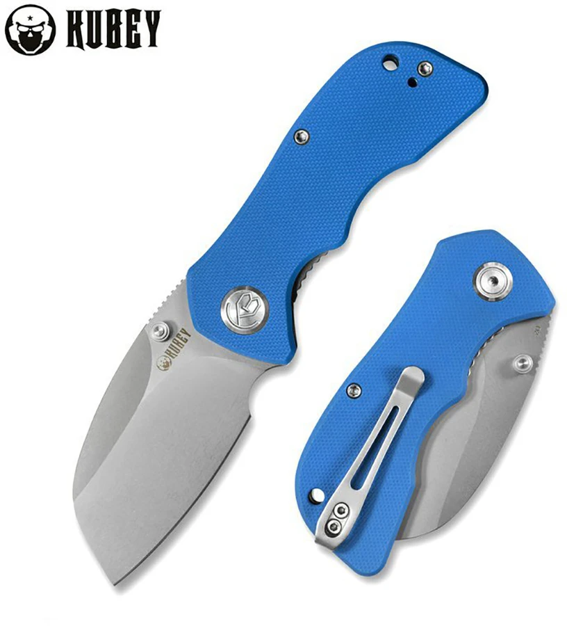Kubey Karaji: kompaktní EDC nůž s čepelí Sheepsfoot. Jedná se o jedno-sečnou čepel s rovným ostřím a rovným tupým hřbetem, který se v přední části sklání ke špičce. Čepel je z vysoce kvalitní nerezové oceli D2, v horní části je vroubkovaná opěrka palce. Rukojeť je z materiálu G10, neklouže a vyniká svou přilnavostí.