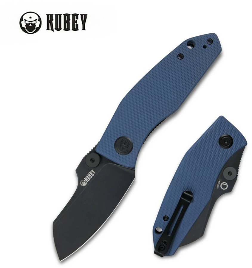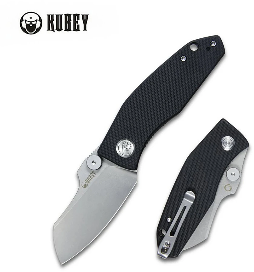 Kubey Monsterdog: praktický zavírací nůž s neobvyklou čepelí Sheepsfoot. Jedná se o jedno-sečnou čepel s rovným ostřím a rovným tupým hřbetem, který se v přední části sklání ke špičce.