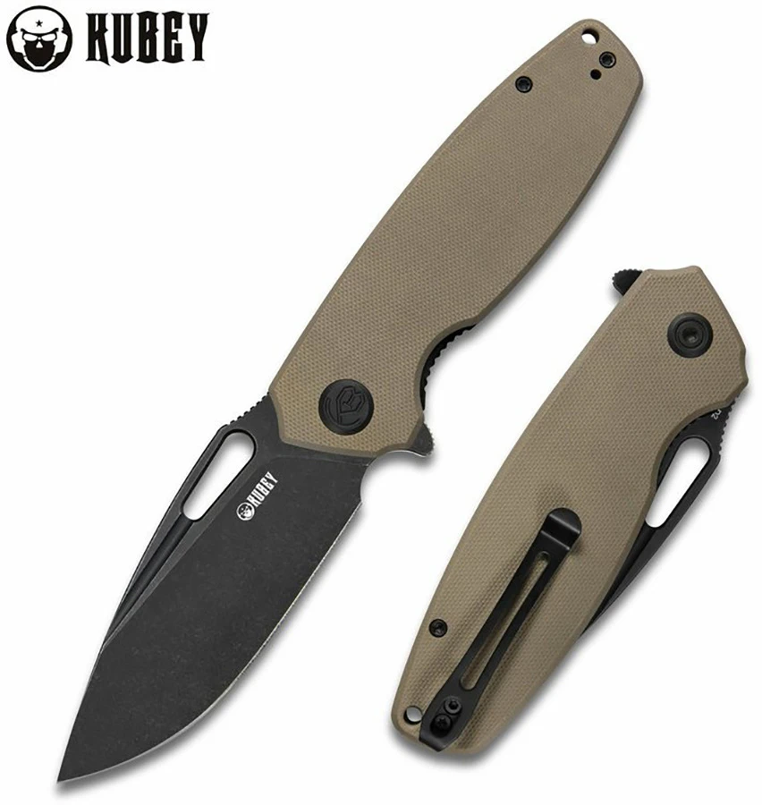 Kubey Tityus D2: kapesní EDC nůž s hladkou čepelí tvaru Drop Poin, která je velmi oblíbená pro svou všestrannost, je vyrobena z vysoce kvalitní nerezové oceli D2, má vroubkovanou opěrku palce. Tvarovaná rukojeť je z materiálu G10, který neklouže a vyniká svou přilnavostí.