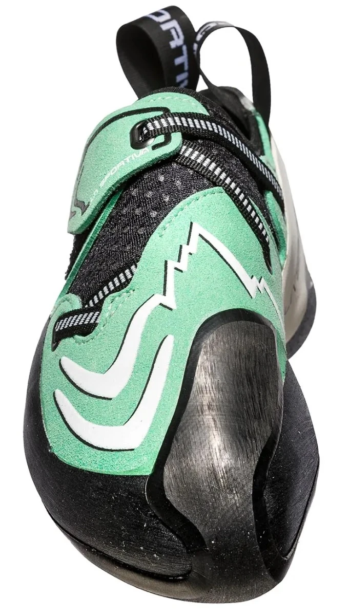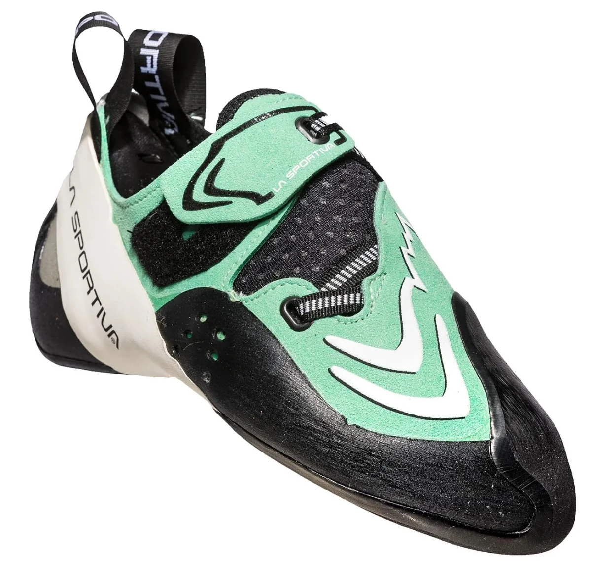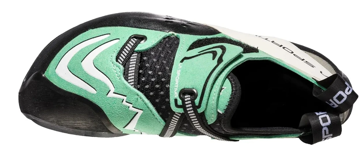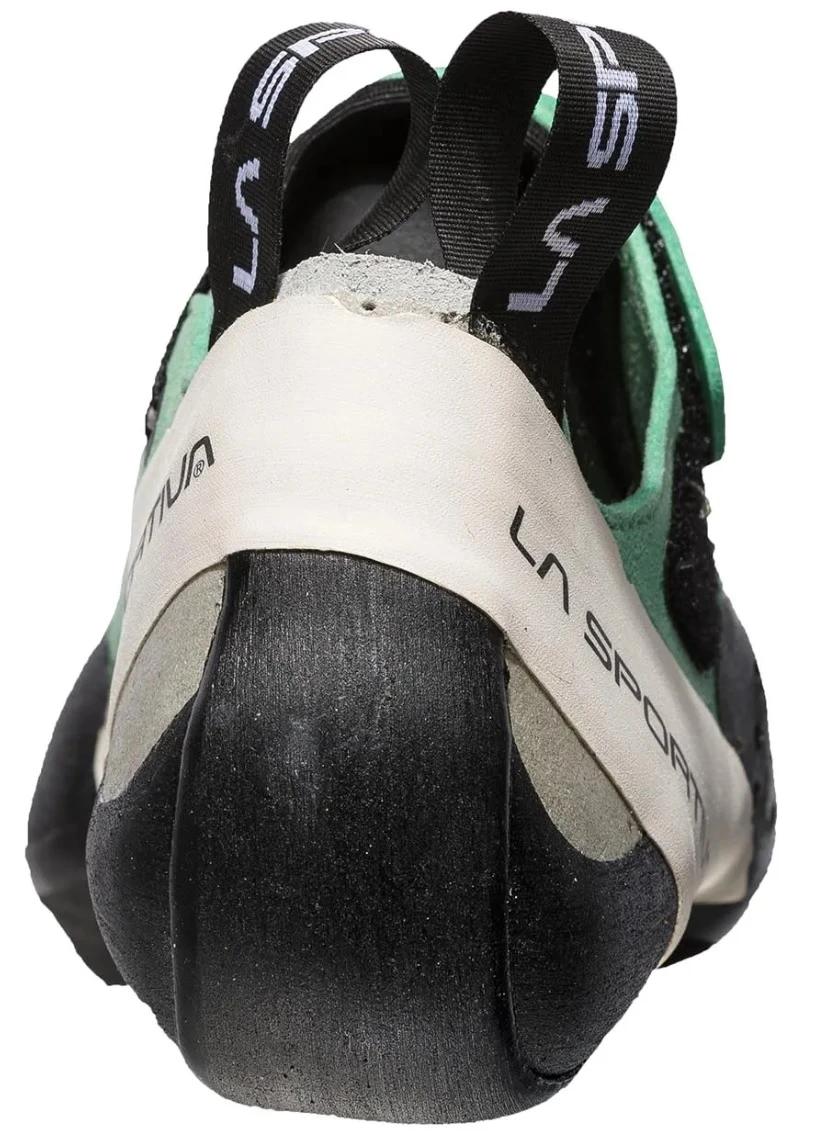 Vysoké prohnutí vydrží i po rozlezení a dává tak lezci vysokou citlivost. Zapínání je suchý zip, který začíná na vnitřní straně a zlepšuje tak posazení lezačky na noze. Lepička Vibram XSGrip 2 zajišťuje vysoké tření na vápně i na písku.