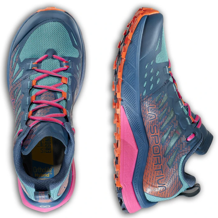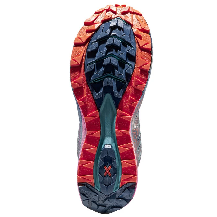 La Sportiva Jackal II Women – jsou dámské trailové běžecké boty určené pro delší tratě. Konstrukce podrážky využívá technologii Infinitoo, kdy mezipodešev je tvořena EVA pěnou s dvojí hustotou, kterou doplňují dva polyuretanové polštářky. Toto spojení poskytuje dokonalé utlumení došlapu a zároveň přispívá k vysoké energetické návrtatnosti.