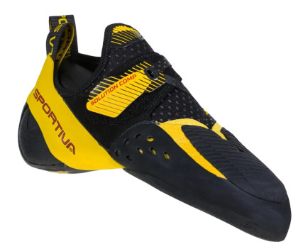 La Sportiva Solution Comp: jsou konstruované pro závodní bouldering a těžké sportovní lezení. Extrémně prohnutá špička zajišťuje citlivost na stupech libovolné velikosti. Vydrží i po rozlezení.