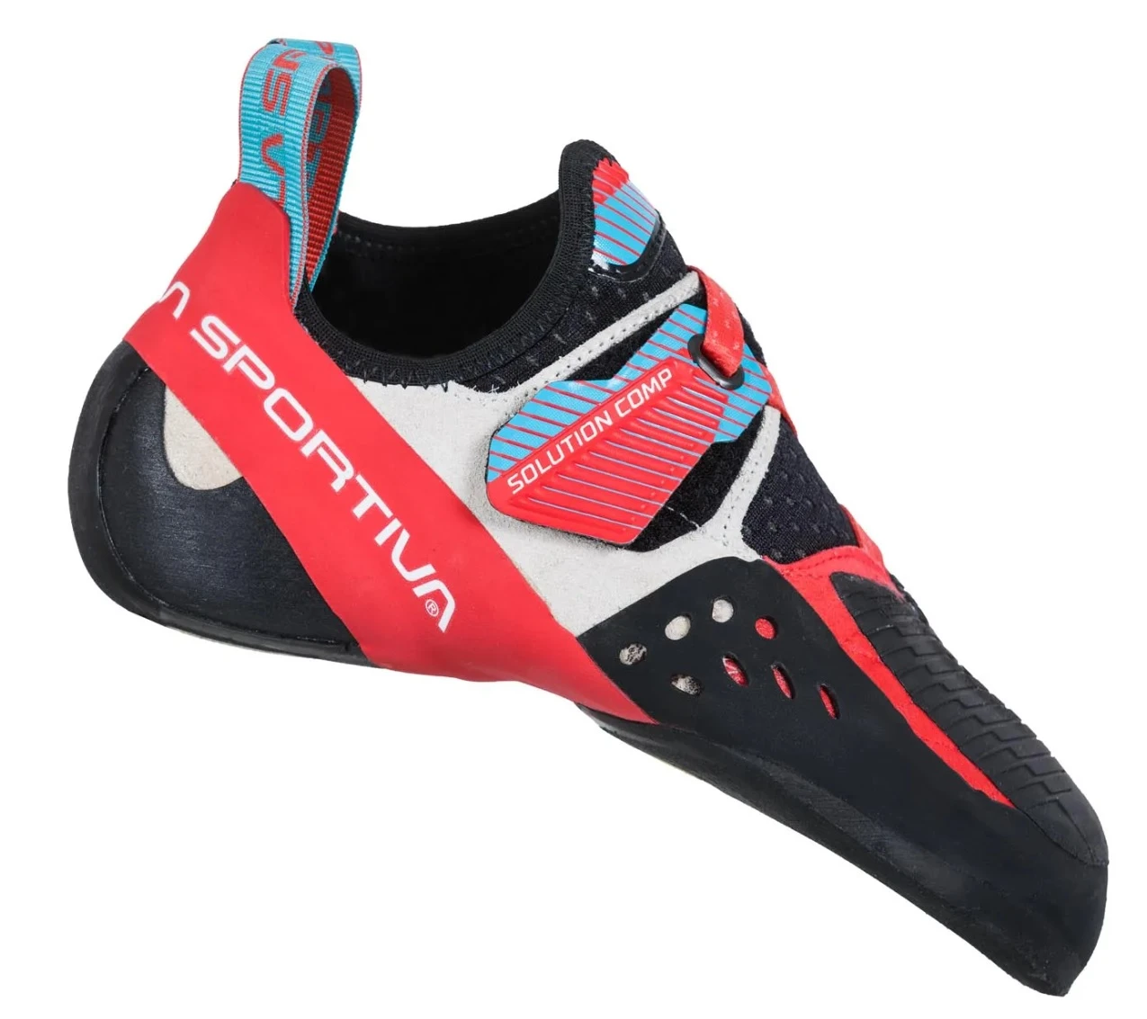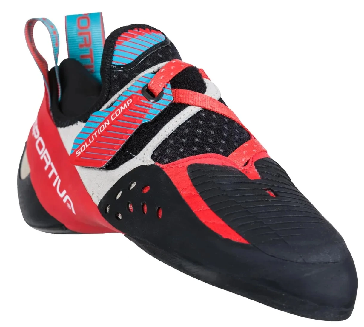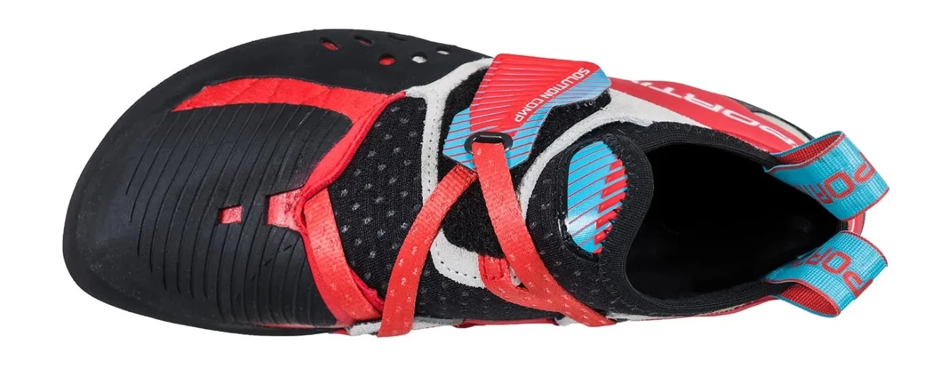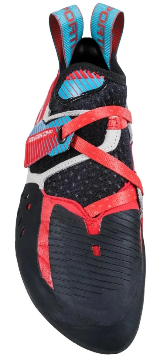 La Sportiva Solution Comp Woman: jsou konstruované pro dámskou nohu. Jsou ideální pro závodní bouldering a těžké sportovní lezení. Extrémně prohnutá špička zajišťuje citlivost na stupech libovolné velikosti. Vydrží i po rozlezení.