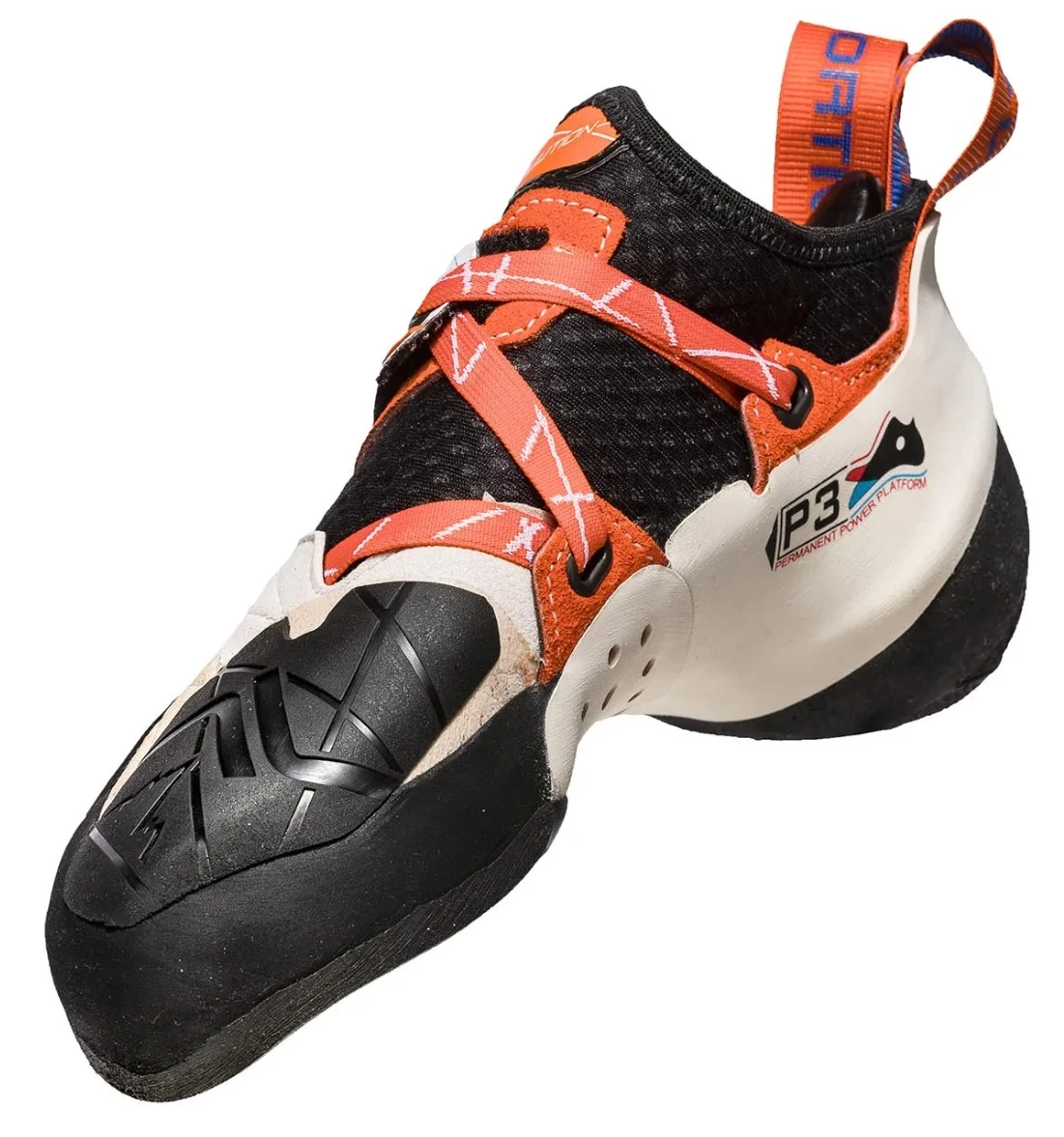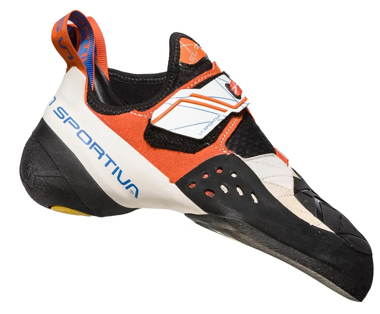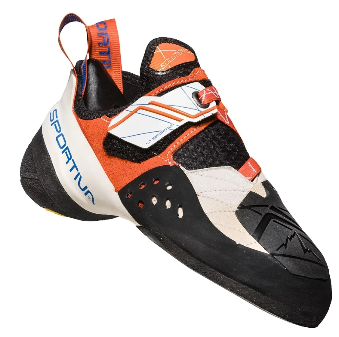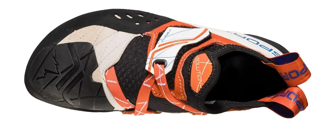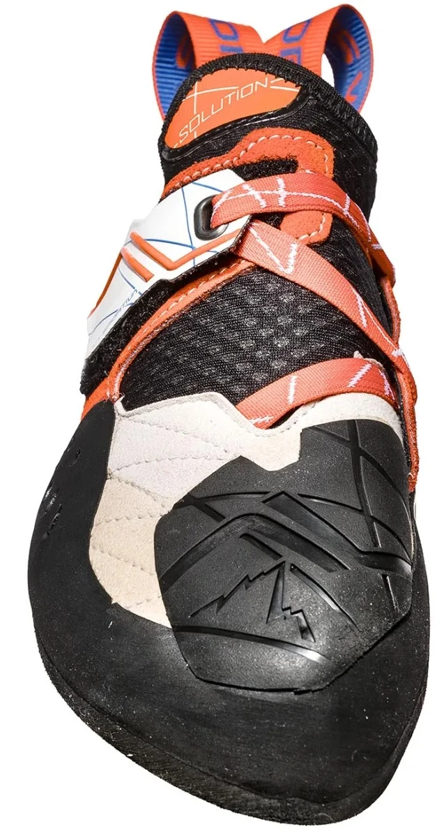 La Sportiva Solution Women: jsou konstruované pro ženy, mají tedy uzší konstrukci. Hodí se pro bouldering, kde oceníte dobrou patu a těžké sportovní lezení. Extrémně prohnutá špička zajišťuje citlivost na stupech libovolné velikosti. Vydrží i po rozlezení.