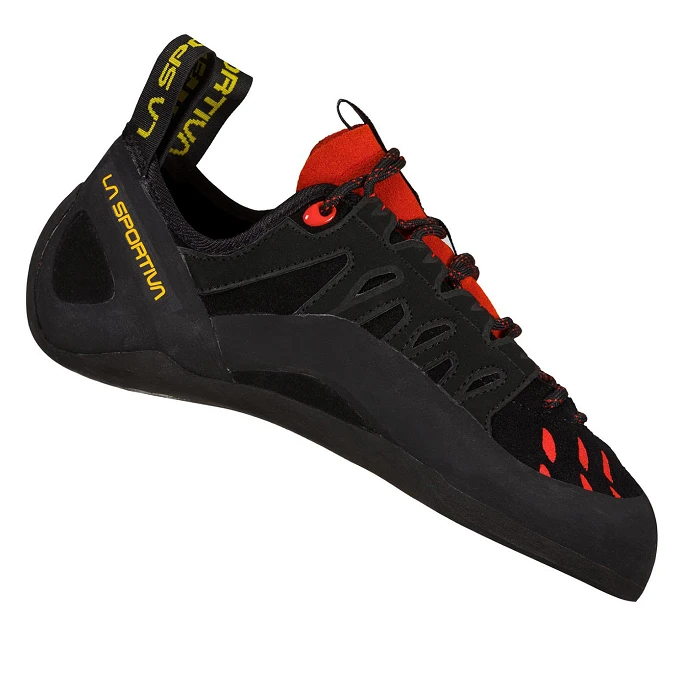 La Sportiva Tarantulace – jsou klasické lezečky pro začátečníky, kteří ocení vysoké pohodlí, která nabízejí právě tyto lezečky. Jejich velká výhoda je v zavazování, můžete si precizně dotáhnout lezecké boty dle svých preferencí a potřeby. Dá se v nich vydržet po celý trénink.
