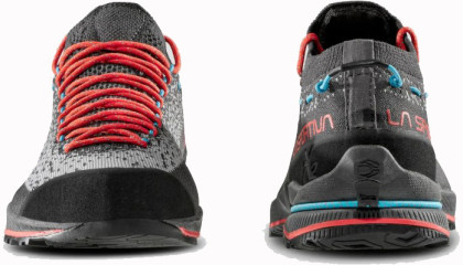 La Sportiva TX2 Evo Woman – jsou hodně prodyšné a dostatečně lehké, dámské boty určené pro nástupy ke skalám nebo lezení ferrat v letním počasí. Jejich konstrukce vychází z lezeček. Na špičce podrážky je guma s nižší tuhostí a vyšší přilnavostí, která vám zvýší tření a tedy i jistotu při lezení na nástupu. Tvar je podobný lezačkám a směřuje vysokou citlivost do špičky. Tkaničky jsou až do přední části pro co nejlepší dotažení.