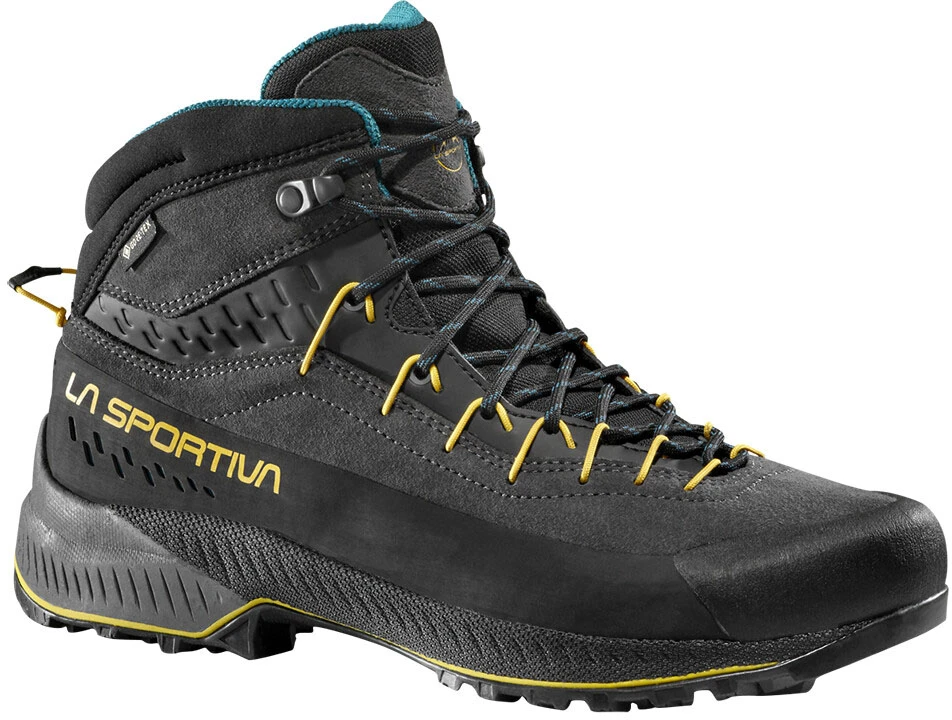 La Sportiva TX4 Mid Evo GTX Men – jsou pánské kotníkové boty zajímavé pro nástupy ke skalám, lezení ferrat nebo lehčí turistiku. Mají tuhost v torzi, dávají vám potřebnou stabilitu i v lezeckém terénu během nástupu. Podrážka je vyrobena ze dvou směsí, nášlapová zóna je měkčí a má vysokou adhezi, zbytek je tvrdší pro vyšší životnost. Přední část je chráněna proti okopu.