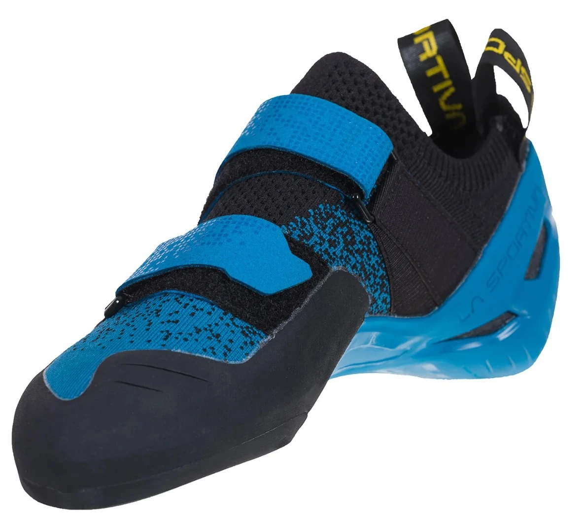 Svršek je z odolné tkaniny, je prodyšná. Poskytují komfort i na umělých stěnách nebo během léta. Zapínání je vyřešeno 2 velcro pásky, snadno je vyzujete nebo nazujete. Lepička je Vibram XS Grip, která ustojí každý stup.
