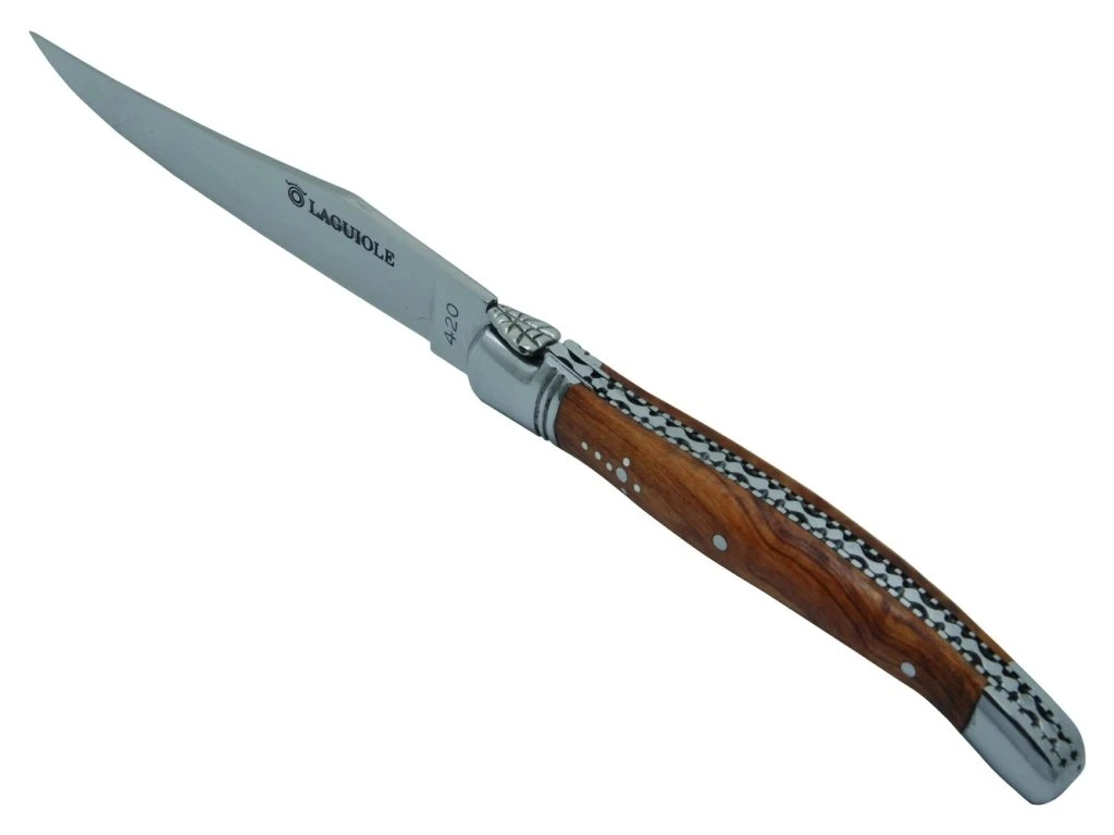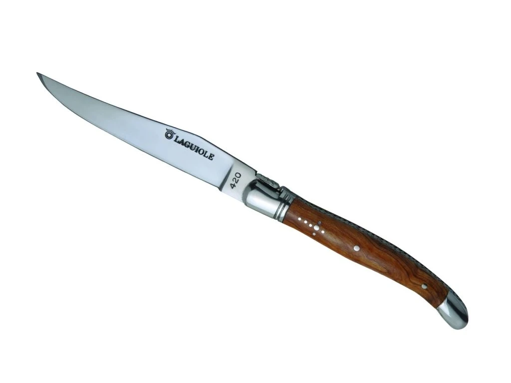 Kapesní nůž Laguiole DUB101 – velice elegantní steakový nůž na doplnění sady nožů, vyroben s rukojetí z olivového dřeva.