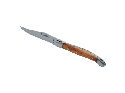 Kapesní nůž Laguiole DUB123 – klasický steakový nůž. Čepel nerezová ocel 420 (odpovídá potravinářskému použití dle normy EN10088-2 2005). Rukojeť z exotického jalovce, vonícího po pepři. Vzhledem k použitým materiálům je nevhodné umývání v myčce nádobí.