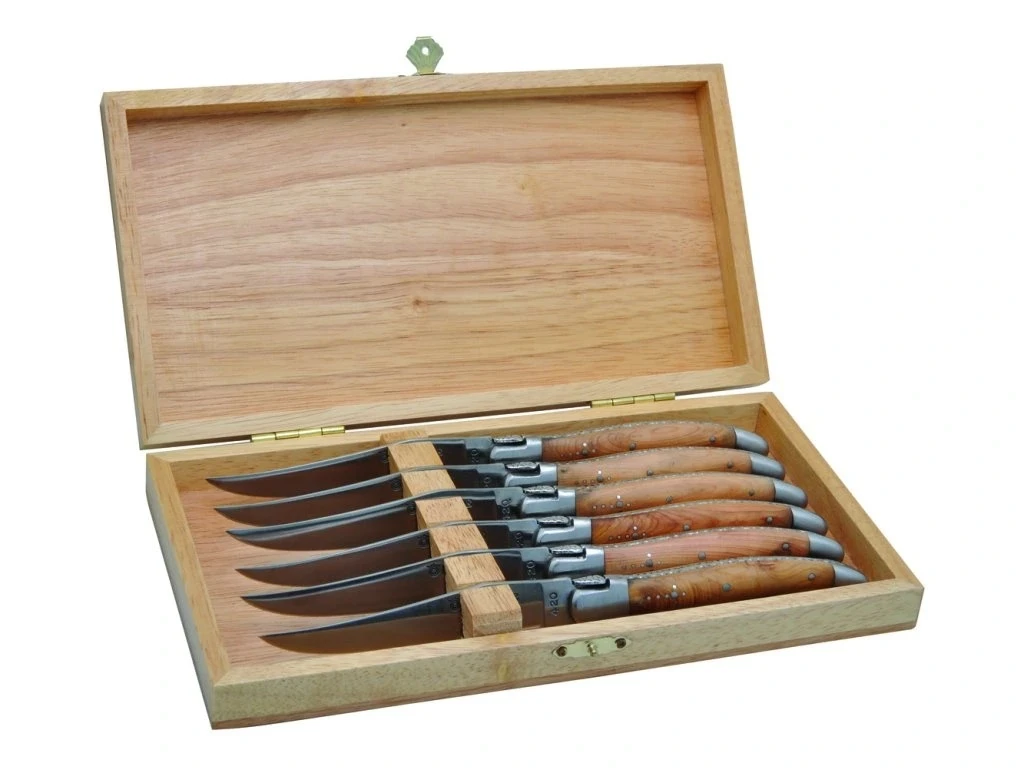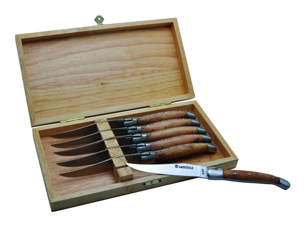 Laguiole DUB124 - sada 6ti nádherných Laquiole steakových nožů s eletantní rukojetí z jalovcového dřeva.