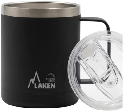 Laken Termo hrnek ocel 360 ml: praktický cestovní termo hrnek který udrží váš napoj teplý nebo studeny delší domu. Hrnek má průhledné víčko, snadno ho otevřete, víčko zajistí pohodlné pití kdekoliv.