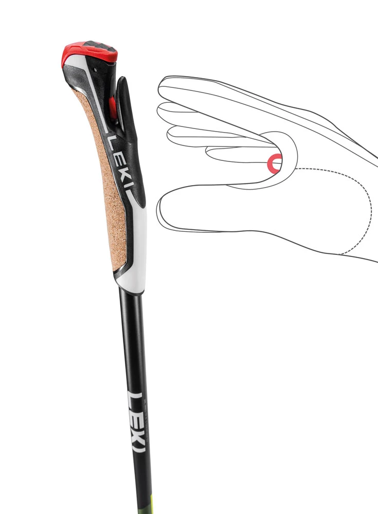Hole mají korkové madlo velmi příjemné pro úchop. Je zakřivené pro co nejkomfortnější chůzi. Nastavení poutka je snadné a pro použití jednoduché. Rukojeť Shark umožnuje snadné a pohodlné odepnutí i připnutí poutka k hůlkám.