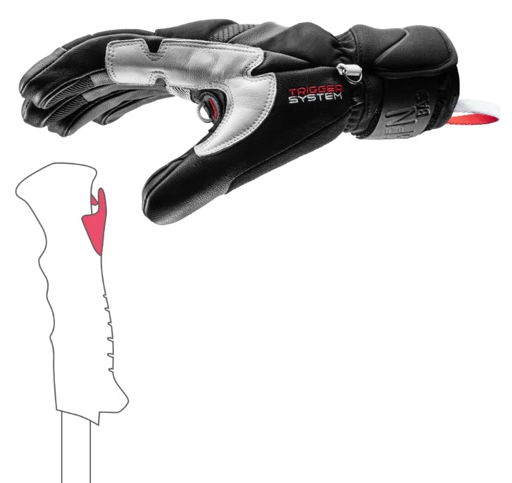Leki Griffin Base 3D: jsou lyžařské rukavice vyrobeny z kozinky, softshellu a neoprenu. Dlaň je rovněž vyrobena ze 100% kozí kůže s přídavnou záplatou ze silikonu Nash. To zajišťuje pohodlné nošení a zároveň vysokou úroveň přilnavosti na hole. Rukavice mají poutko, do kterého jdou rychle zapnout hůlky Leki se systémem Trigger S. Jsou zatepleny vláknem Bemberg. Rukavice jsou vybaveny technologií mf touch pro snadné ovládání chytrého telefonu aniž by jste museli rukavice sundat.