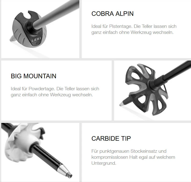 – dva typy košíčků, klasický lyžařský a skialpinistický (velký)