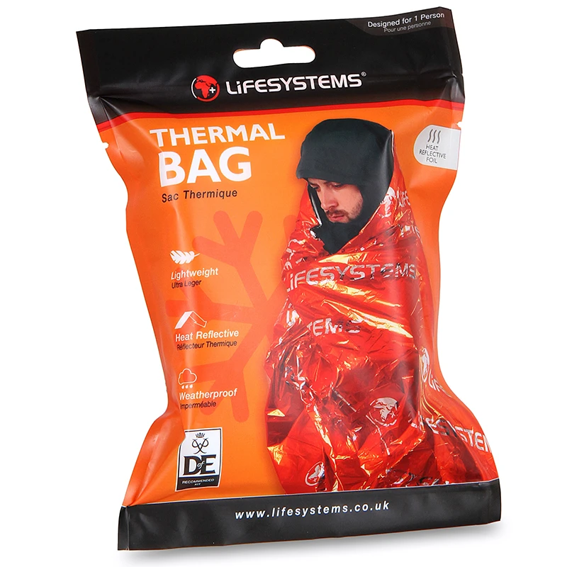Lifesystems Thermal Bag – je nouzový termo bivakovací vak, který je vyrobený z pokoveného polyesteru, který odráží zpátky více než 90% vyzařovaného tělesného tepla, má svařené a podlepené švy. Není prodyšný, nehodí se tedy pro běžné používání.