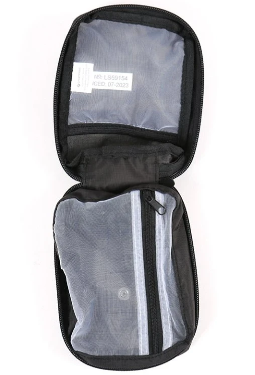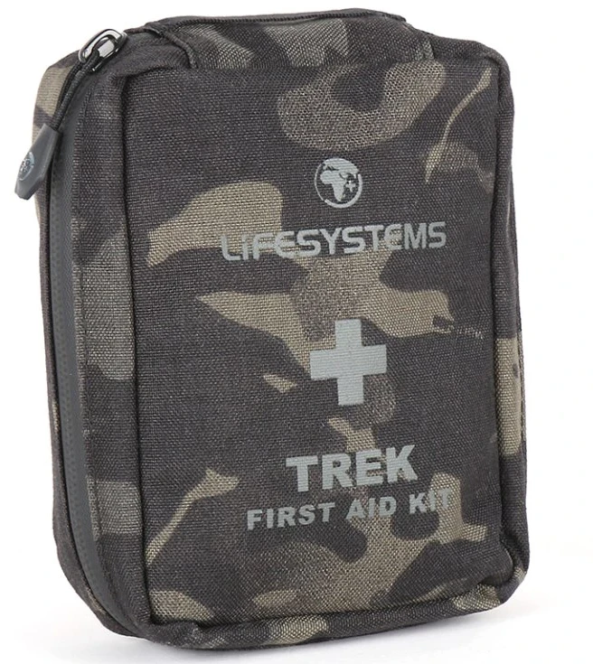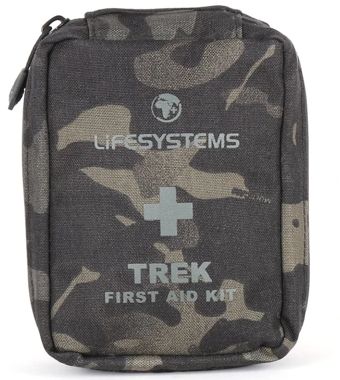 Lifesystems Trek Camo First Aid Kit: je lékárnička, která vám poskytuje vše potřebné pro ošetření menších úrazů. Lékárnička je vhodná na kolo nebo na menší trek. Obal lékárničky je vyroben z odolného Ripstop materiálu potažený polyuretanem, který zvyšuje odolnost proti vlhkosti, má vodotěsný zip a poutko na připevnění k opasku.