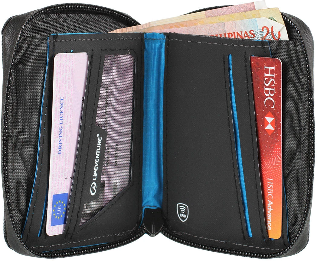 Lifeventure RFiD Bi-Fold Wallet - outdoorová dvojitá skládací peněženka na doklady a peníze. Uzavírání na zip, přídavná kapsa (není RFiD chráněna), voděodolná.